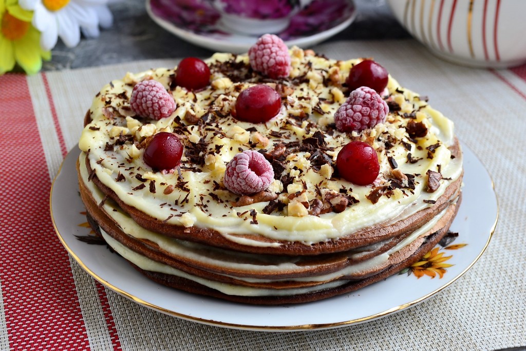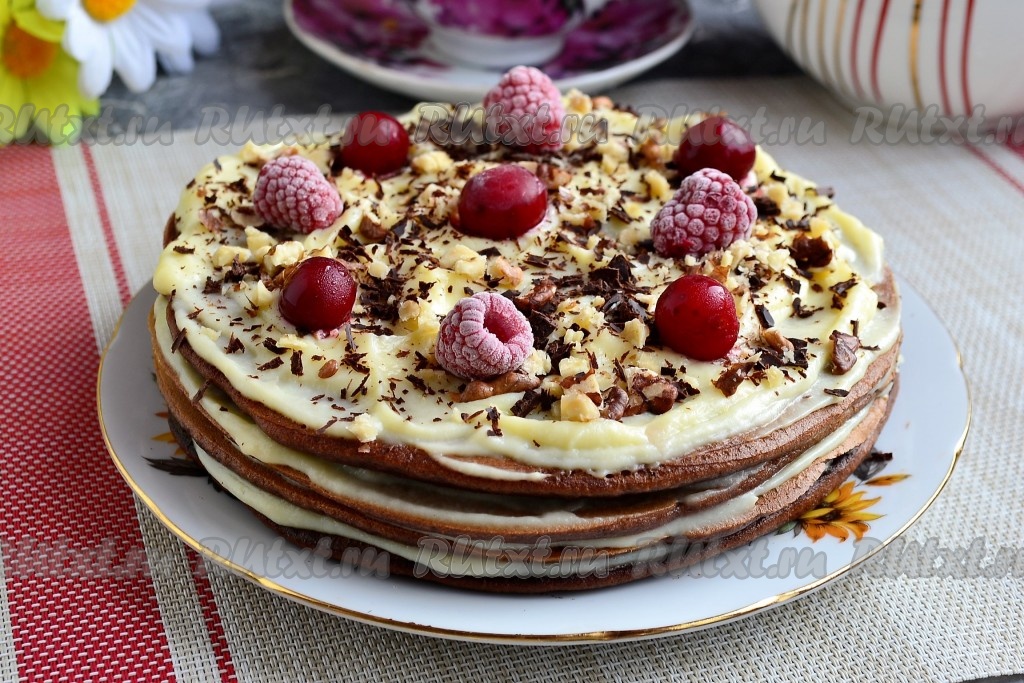 Для тех, у кого нет духовки или просто не хочется включать её по каким-то причинам, предлагаю приготовить шикарный шоколадный торт на сковороде. Коржи в этом необычайно вкусном тортике получаются мягкими и очень шоколадными, выпекаются они на сухой сковороде. Крем я использовала заварной, приготовленный в микроволновке. Этот густой, вкусный, нежный крем отлично подошёл для смазывания коржей. Вы можете смазать торт любым другим кремом или просто варёной сгущёнкой. Шоколадный торт готовится по этому рецепту на сковороде быстро и просто, он точно понравится и вам, и вашим близким! Из указанного количества ингредиентов у меня получился торт из 4 коржей диаметром 19 см.