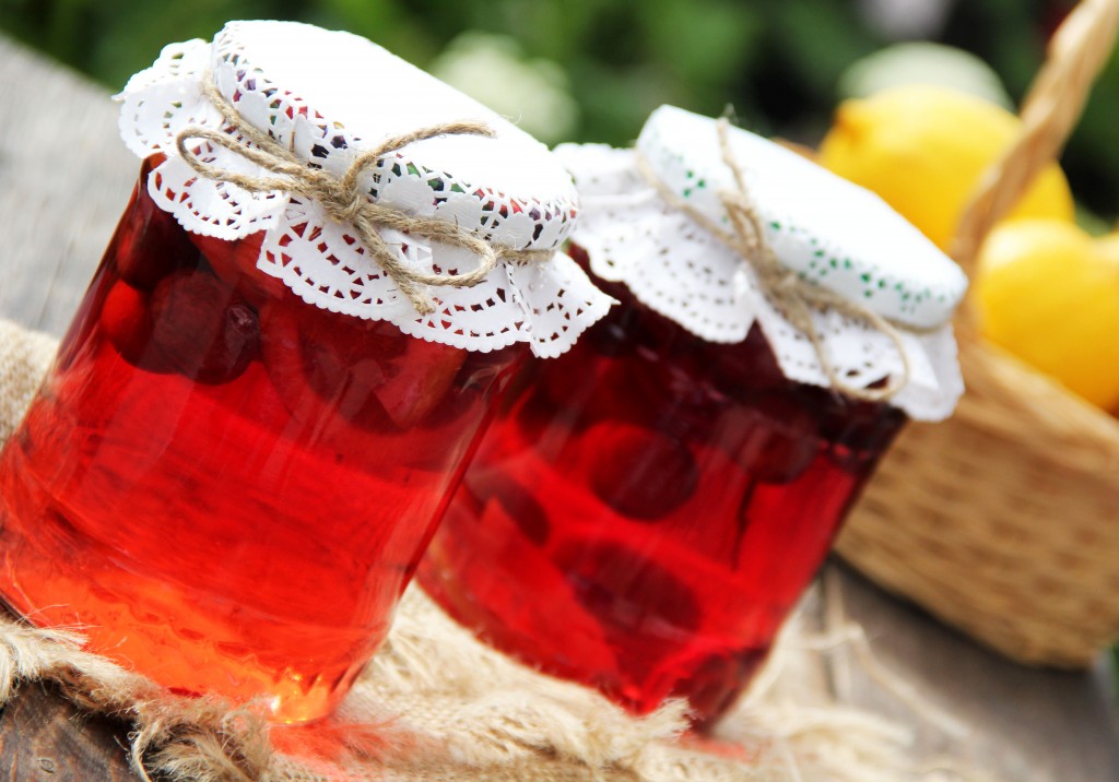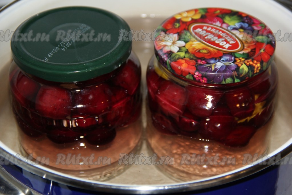 Залить банки с черешней и лимоном горячим сиропом до самого верха.