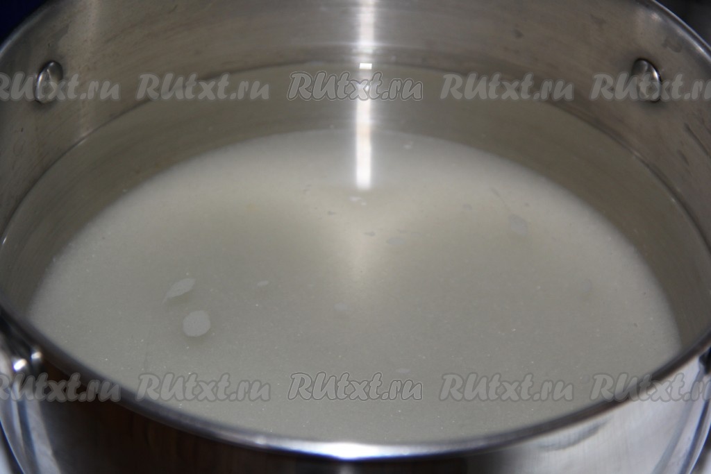 Поставить кастрюлю на огонь, довести сироп до кипения, затем пару минут проварить на среднем огне, чтобы полностью растворились кристаллы сахара.