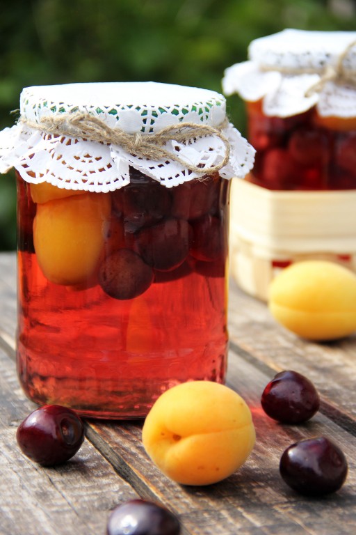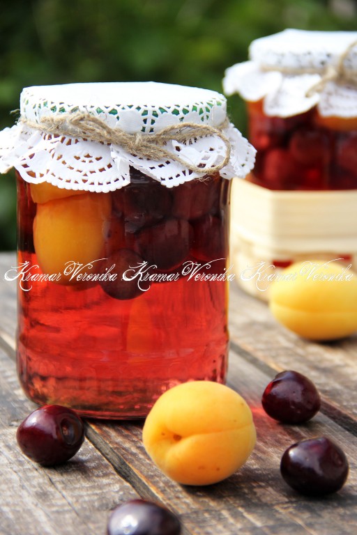 Зимой компот из черешни с абрикосами порадует и яркими красками, и прекрасным вкусом, и сочными плодами.
