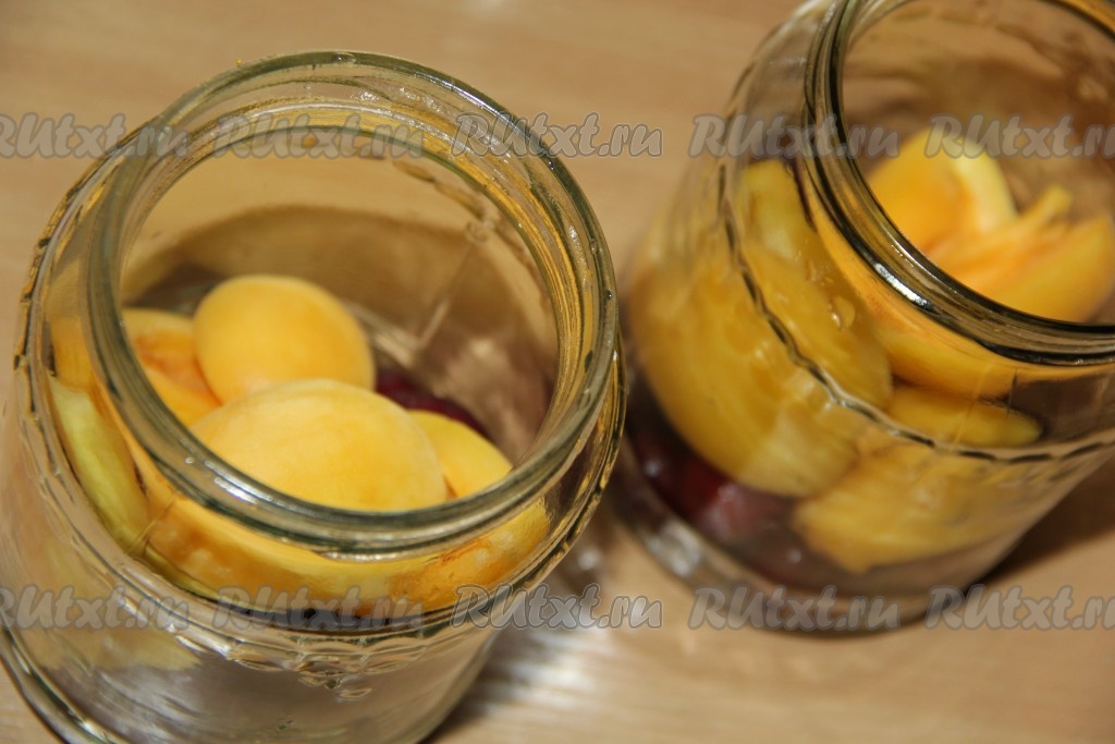 Затем разложить по баночкам половинки абрикосов.