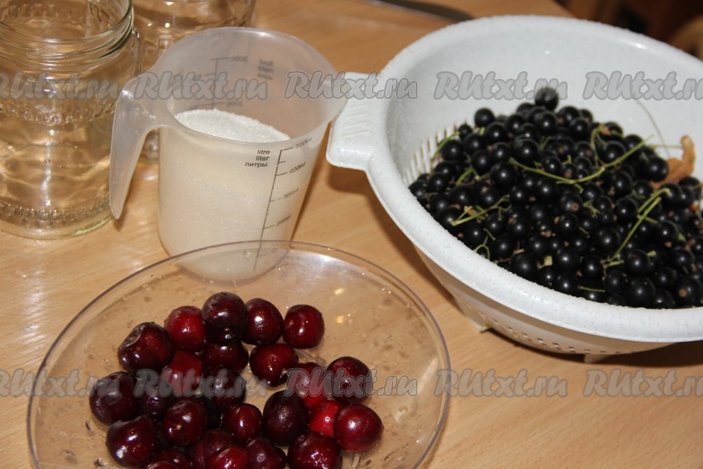 Для приготовления компота из чёрной смородины и черешни на зиму нам потребуется: