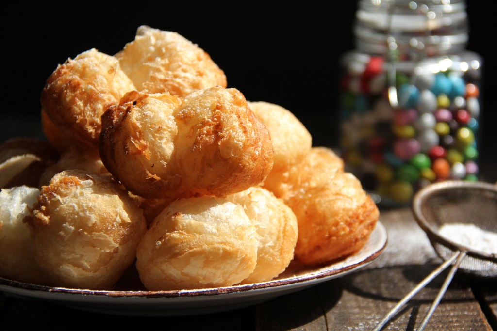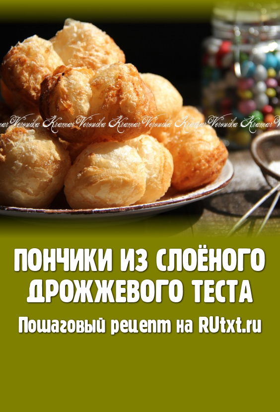 Красивые, воздушные и очень вкусные пончики, приготовленные из слоёного дрожжевого теста, подать к чаю. Перед подачей не забудьте присыпать их сахарной пудрой.