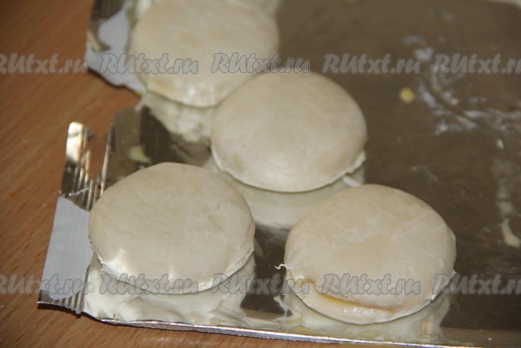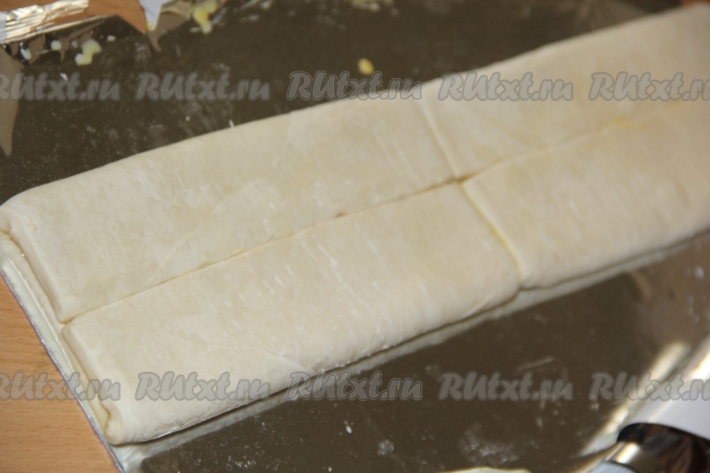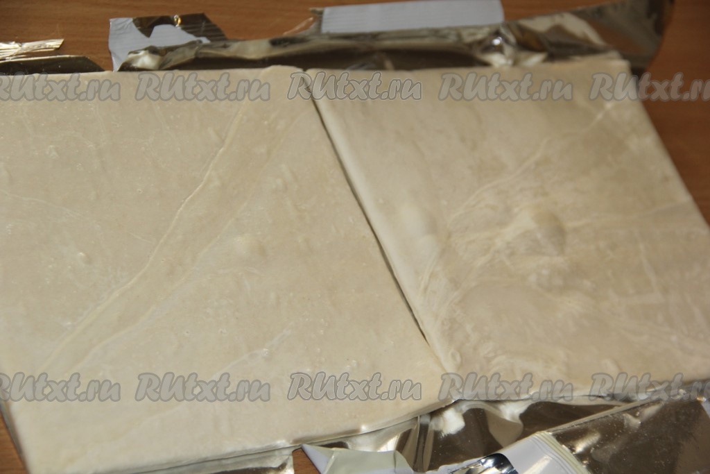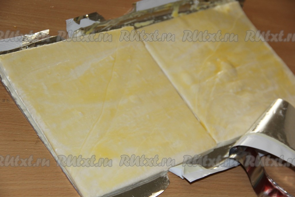 Завернуть каждый пласт теста к середине с двух сторон (как на фото). Можно просто положить пласт теста на пласт желтком внутрь.
