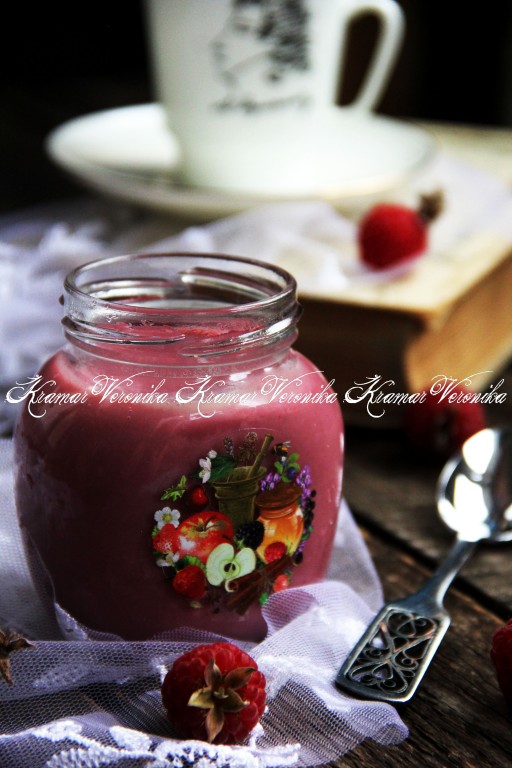 Переложить курд из малины в баночку, дать немного остыть, а затем закрыть крышкой и убрать в холодильник до полного остывания. У меня получилась баночка объёмом 250 миллилитров.