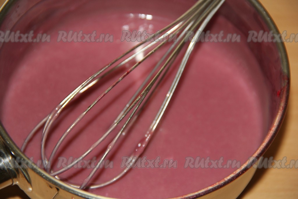 Вылить в сотейник ягодный сок, добавить яйцо и желток, перемешать венчиком, должна получиться однородная масса.