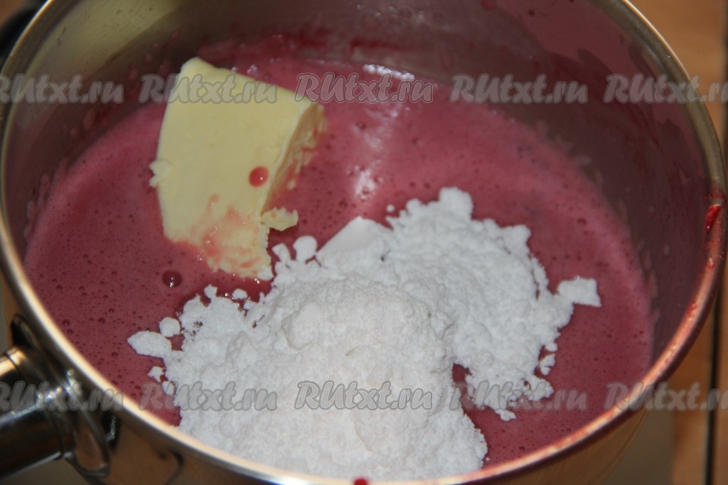 Варить курд на медленном огне, постоянно помешивая. После закипания малиновый заварной крем постепенно начнёт густеть. Как только он "запыхтит", снять его с огня. У меня ушло до загустения, примерно, 5-7 минут с момента закипания.