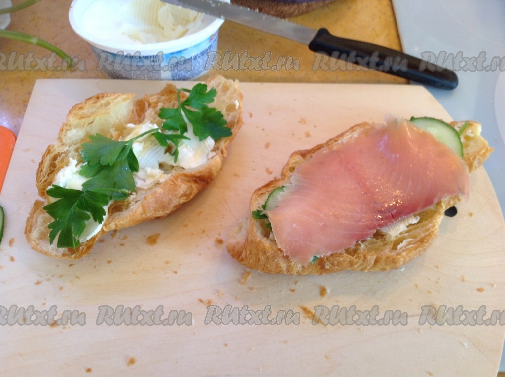 Положить кусок сёмги на одну половинку круассана.