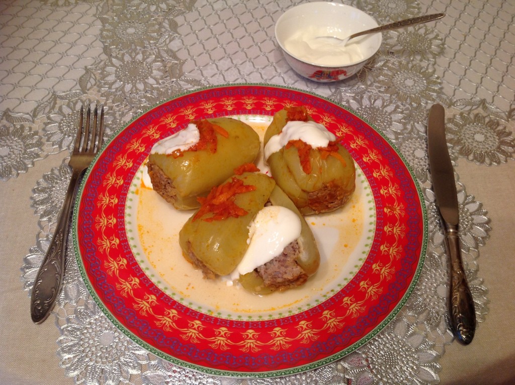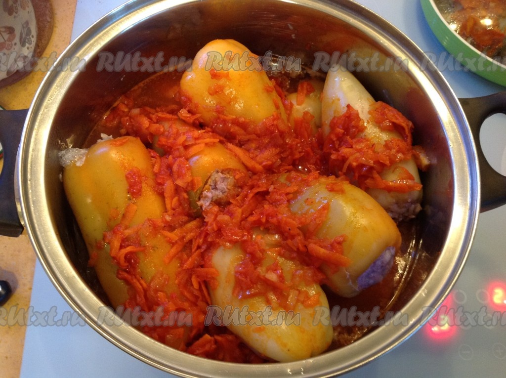 Перец, фаршированный мясом и рисом, - блюдо, знакомое и любимое многими из нас с детства. Готовят его с разными наполнителями - с мясом и овощами, с морковкой и рисом... Я предлагаю приготовить классический рецепт начинки - мясо (говядина и свинина) и рис. Подливка из моркови и лука подчеркнёт вкус этого блюда и украсит его. Уверена, ваши старания будут не напрасны!
