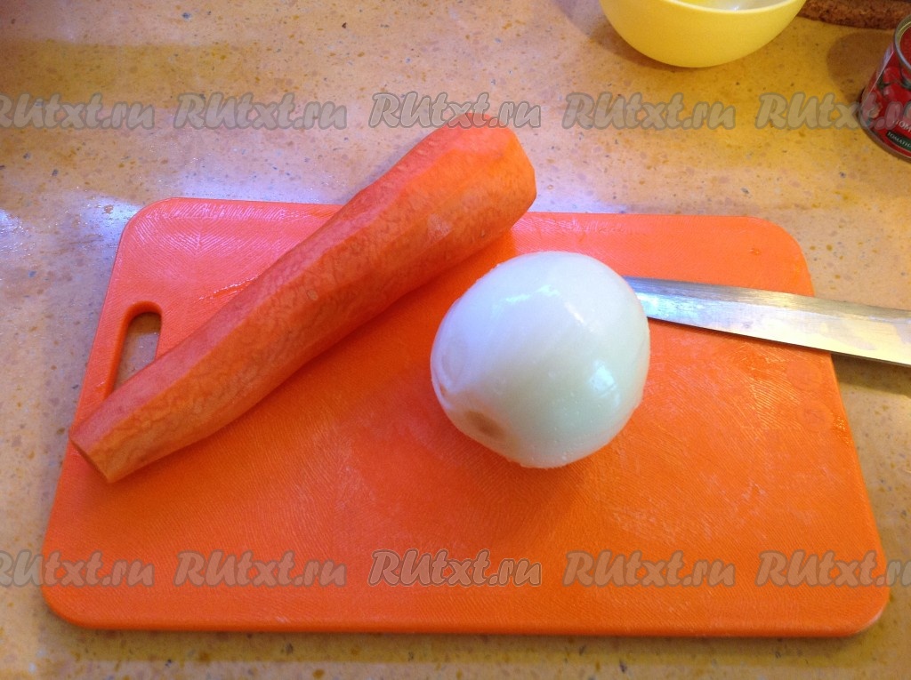 Теперь можно заняться подливкой. Чистим морковь и оставшуюся луковицу.