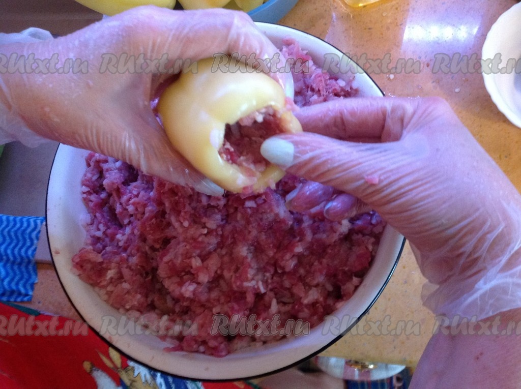 Перец моем и очищаем от семечек. Мясо нарезаем на кусочки.