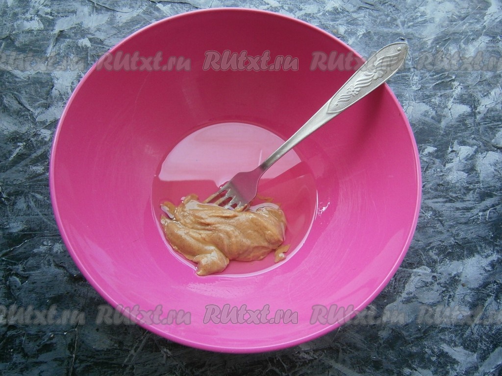 Венчиком хорошенько перемешать масло с горчицей, в идеале - до однородности (масло может не полностью смешаться с горчицей).