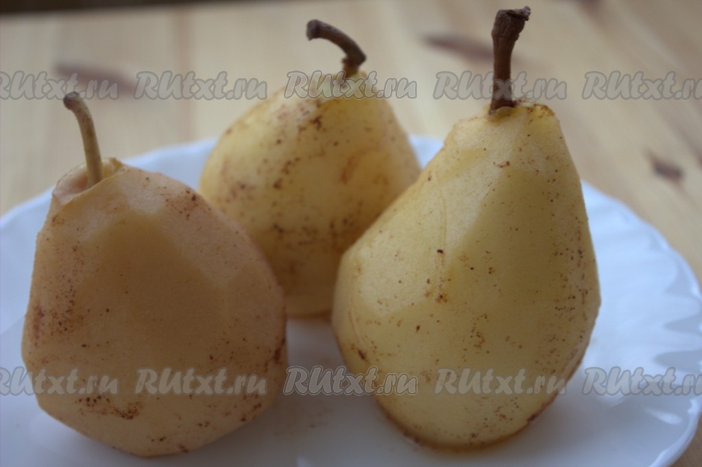 Груши вымыть, снять кожицу, оставляя плодоножку.