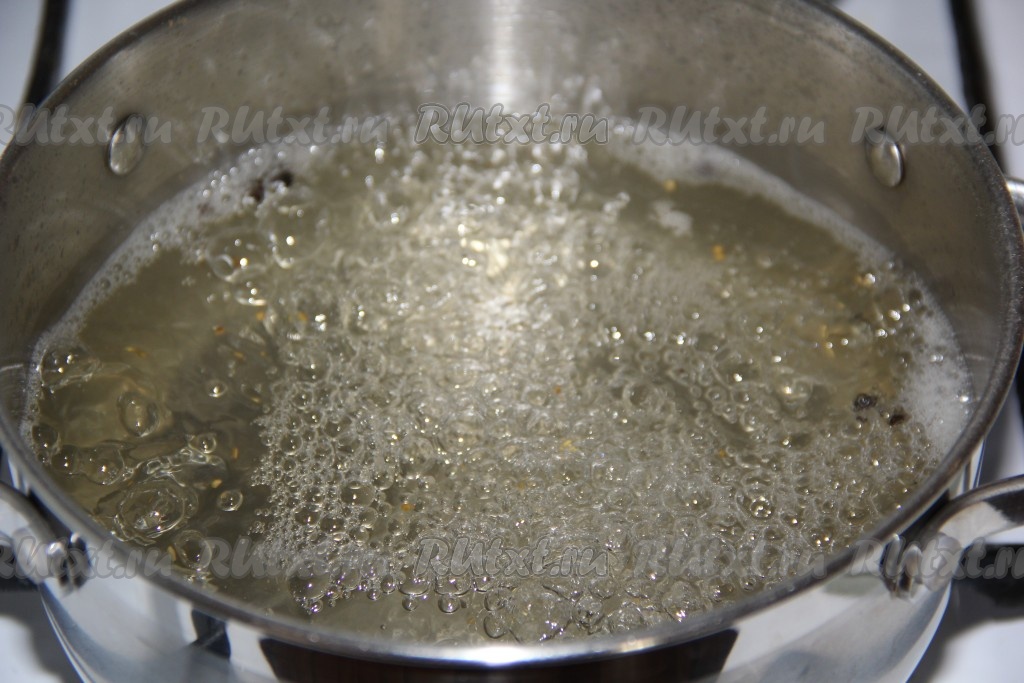 Когда вода с солью и сахаром в кастрюле закипит, добавить лимонную кислоту и, уменьшив огонь до среднего, проварить маринад пару минут (чтобы все кристаллики растворились).