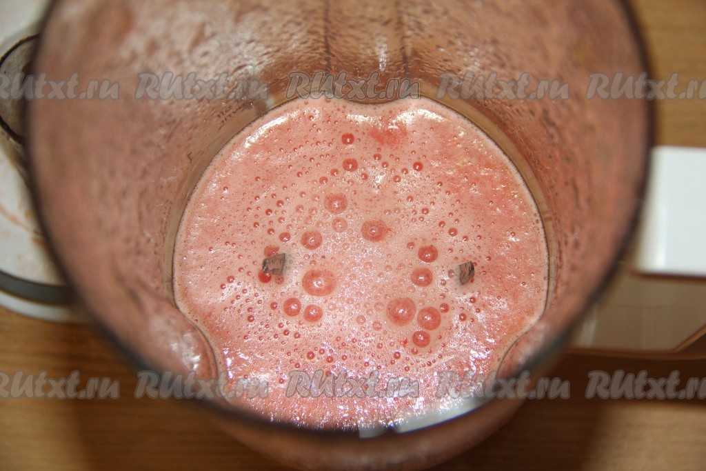 Пробить арбуз погружным блендером до однородного состояния.