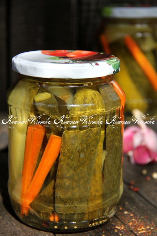 Этот рецепт консервирования огурцов по-канадски я нашла в кулинарном журнале, решила приготовить. Мне очень понравился вкус этих маринованных огурчиков. Зимой такие огурцы можно подать в качестве дополнения к гарниру, например, к картошке или использовать для приготовления салатов. Болгарский перец и морковка, которые консервируются вместе с огурчиками, тоже получаются хрустящими и очень вкусными. Уверена, такая заготовка понравится многим!