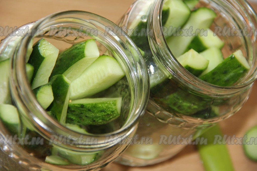 Огурцы хорошо вымыть, разрезать в длину на брусочки и выложить в банки.