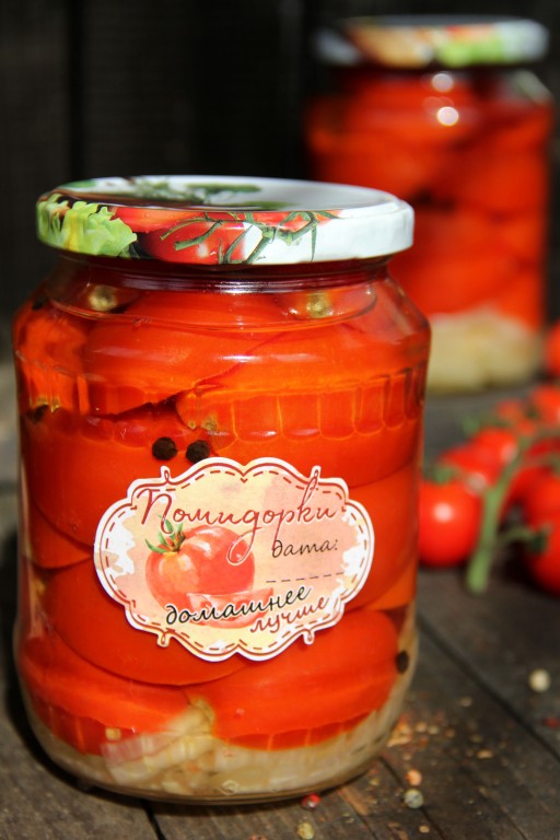Вот такие яркие, аппетитные и очень вкусные помидоры, маринованные дольками с луком, получились. Хранить банки можно в кладовке или погребе. Такие помидорчики и лук прекрасно разнообразят зимнее меню, попробуйте!