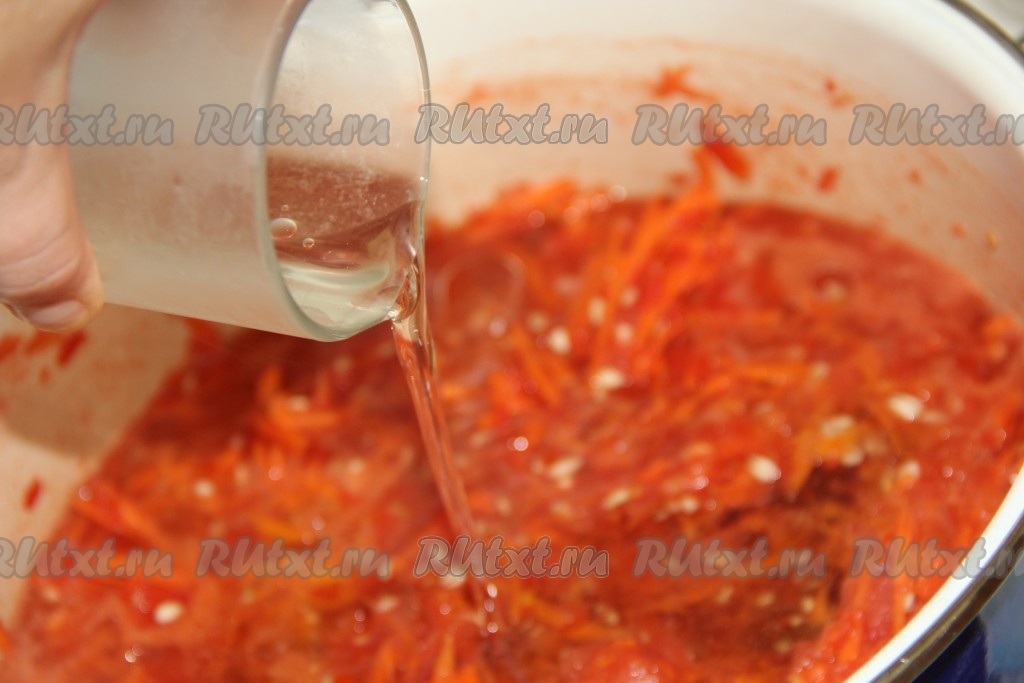 Когда масса закипит, влить растительное масло, перемешать и довести до кипения.