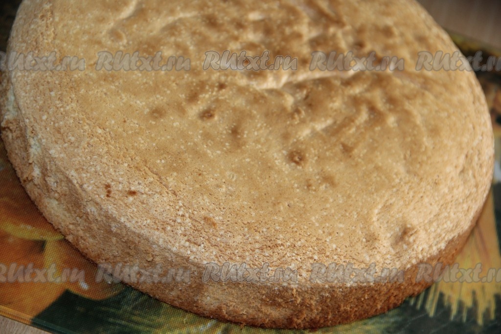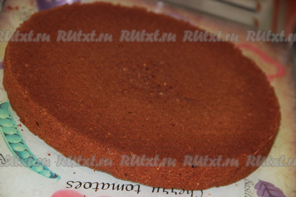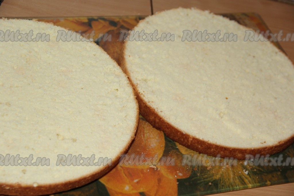 Ванильный (белый) бисквит разрезать на две части.