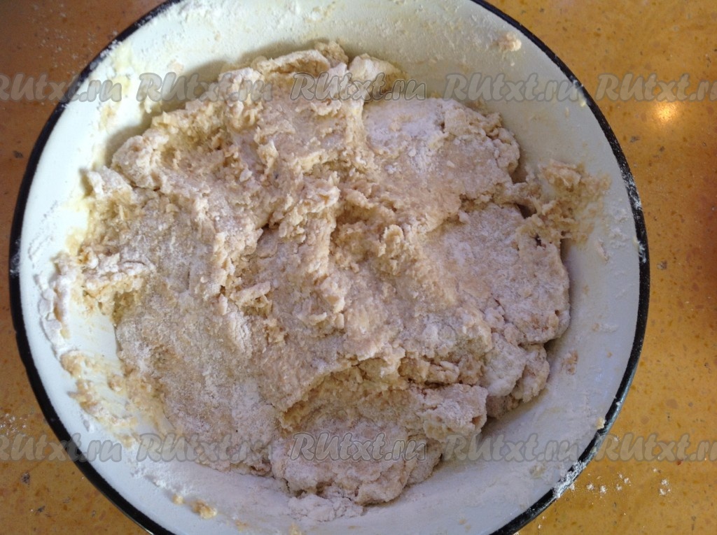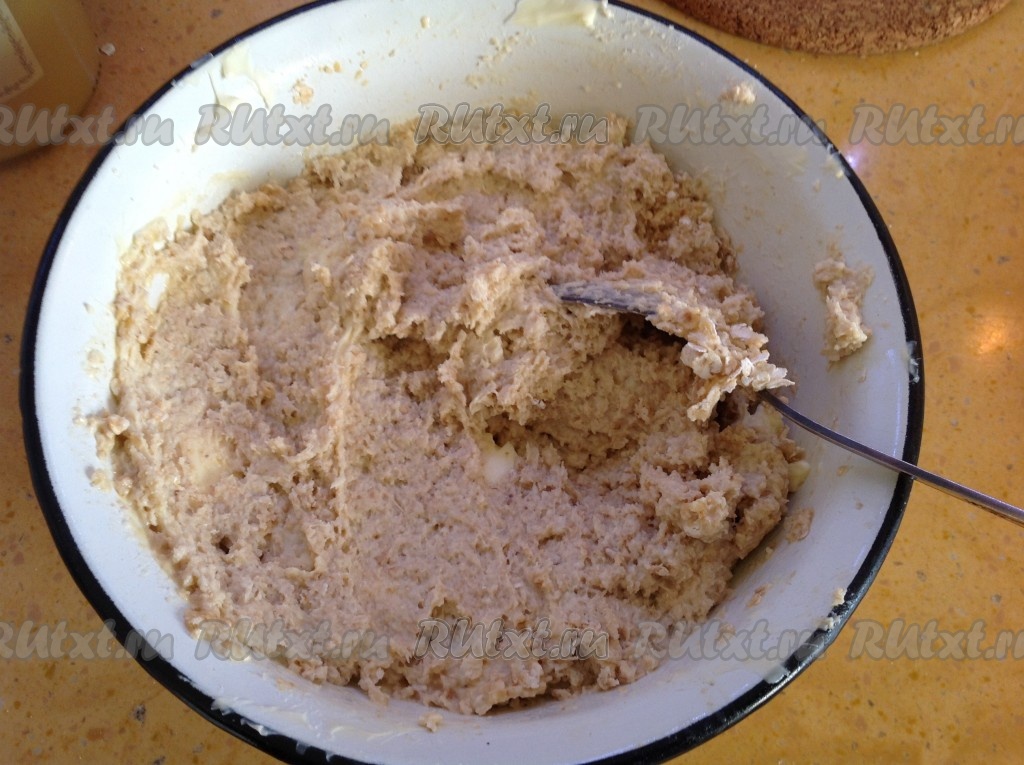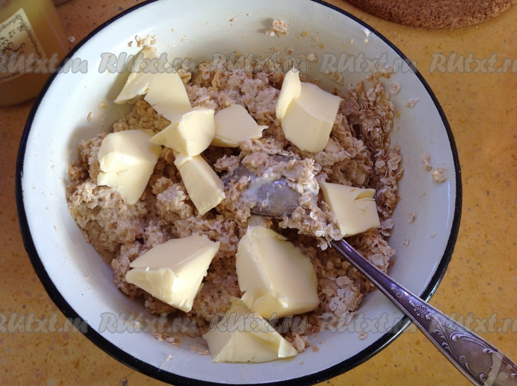 Мягкое сливочное масло разделить на кусочки и вмешать в массу.