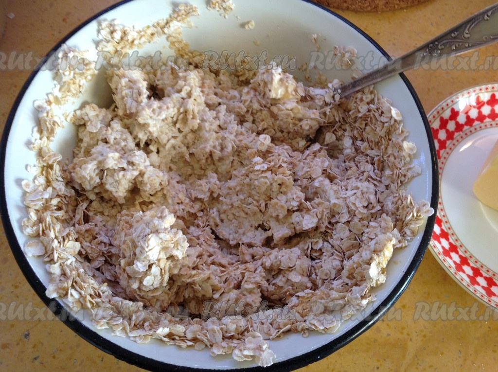 Всыпать 2 стакана овсяных хлопьев.