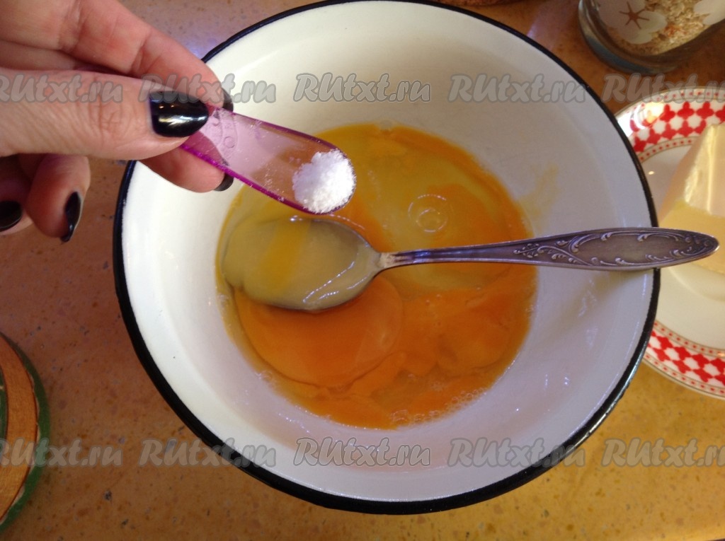 В миску разбить яйца и добавить мёд.