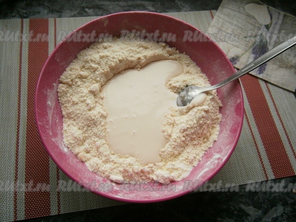 Муку с маслом перетереть руками в мелкую крошку, всыпать соль, соду, сахар и лимонную кислоту.