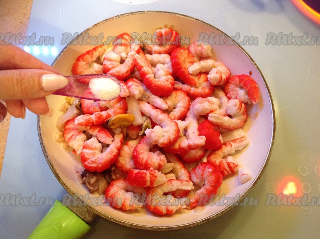 Приправляем морепродукты специями по вкусу (я использовала набор специй для морепродуктов).