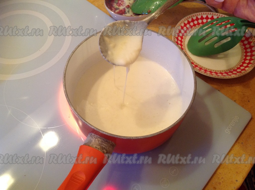 Перчим наш соус по вкусу и, не доводя до кипения, снимаем с огня. Сырный соус должен быть тянущимся по консистенции.