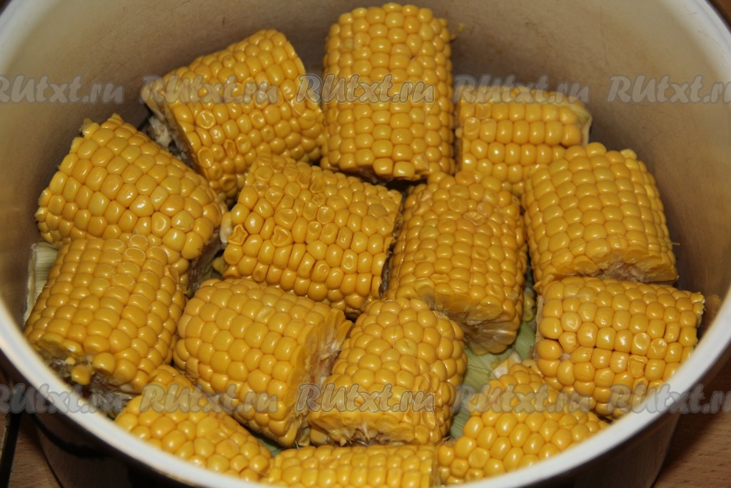 Готовую кукурузу снять с огня и оставить на минут 30 под крышкой.