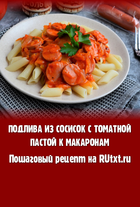 Хочу предложить вам рецепт приготовления очень вкусной и достаточной сытной подливы из сосисок с томатной пастой к макаронам. Готовится блюдо достаточно просто и быстро, а получается замечательным. Такая аппетитная подлива в сочетании с макаронами станет отличным обедом или ужином для всей семьи. Сосиски обязательно выбирайте высшего качества. Уверена, несмотря на простоту, блюдо понравится многим!