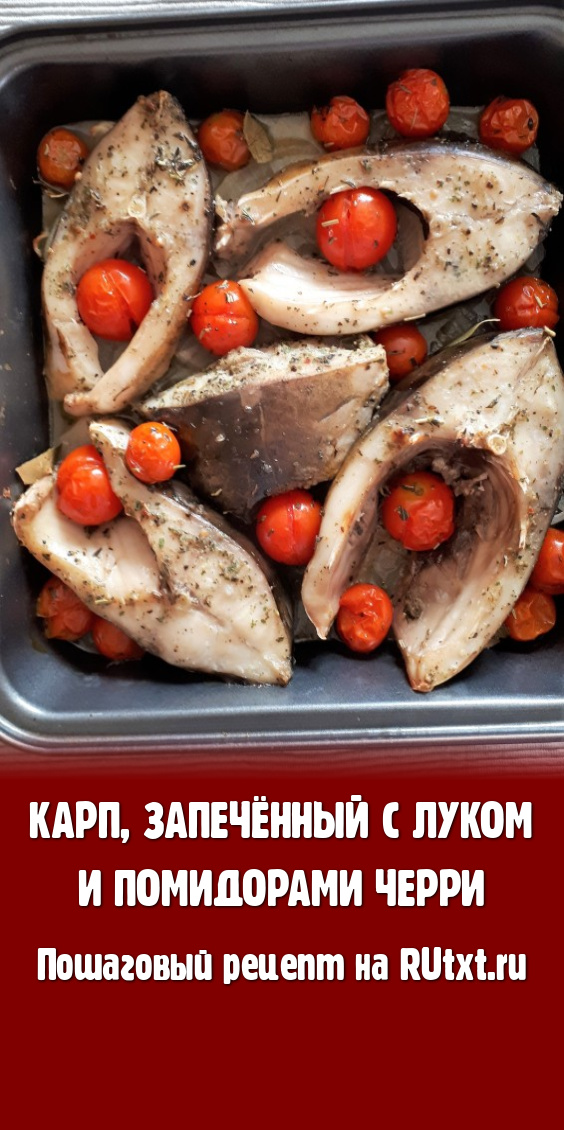 Любителям рыбки предлагаю полакомиться карпом, запечённым с луком и помидорами черри. Готовится блюдо достаточно просто - нужно всего лишь сложить продукты в форму и поставить в духовку. Лук и помидоры придают блюду невероятный аромат и сочность. Попробуйте, очень вкусно!
