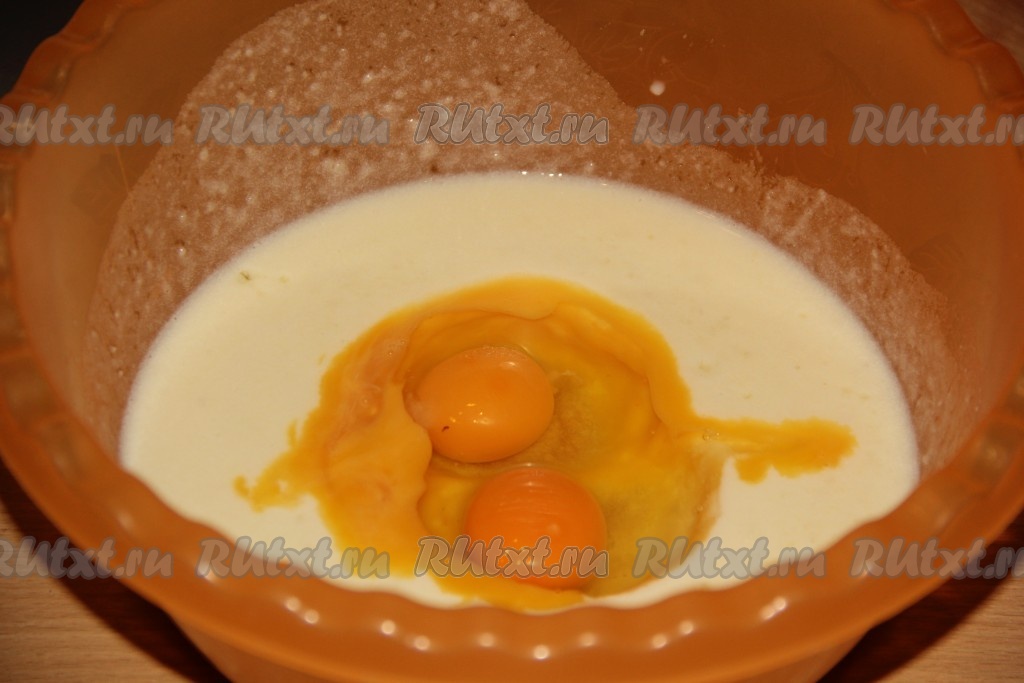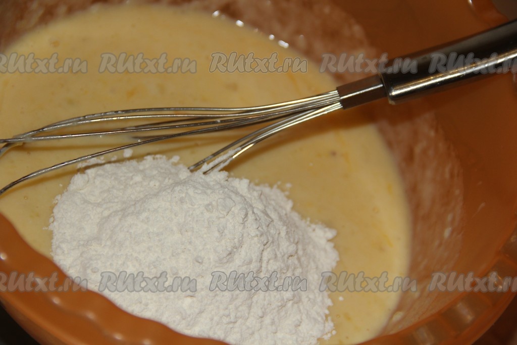 Перемешать получившееся тесто венчиком и влить растительное масло, ещё раз перемешать.