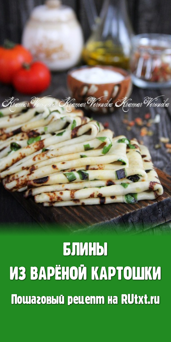 Из варёной картошки можно приготовить замечательные очень тонкие, вкусные и нежные блины. Подать их можно с растопленным сливочным маслом или сметаной. Для того чтобы блины получились ещё более аппетитными, в процессе жарки можно добавить нарезанную зелень (например, зелёный лук или укроп). Уверена, эти замечательные картофельные блинчики многим придутся по вкусу!