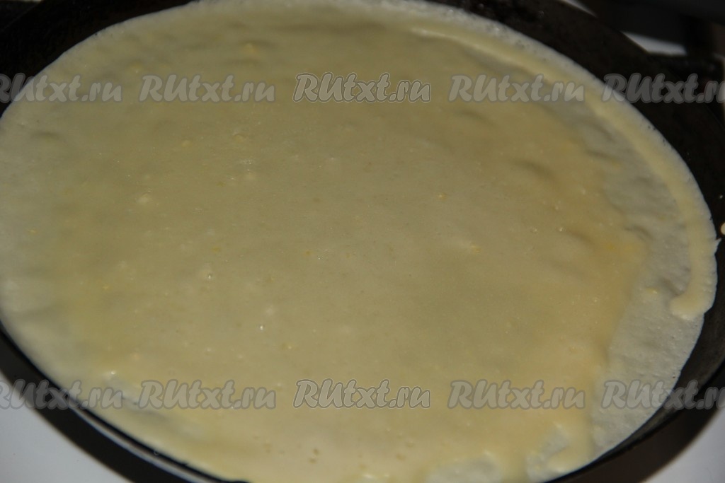Выпекать блины с двух сторон на разогретой сковороде на среднем огне до золотистого цвета. В состав теста входит растительное масло, поэтому сковороду я не смазывала дополнительно маслом.