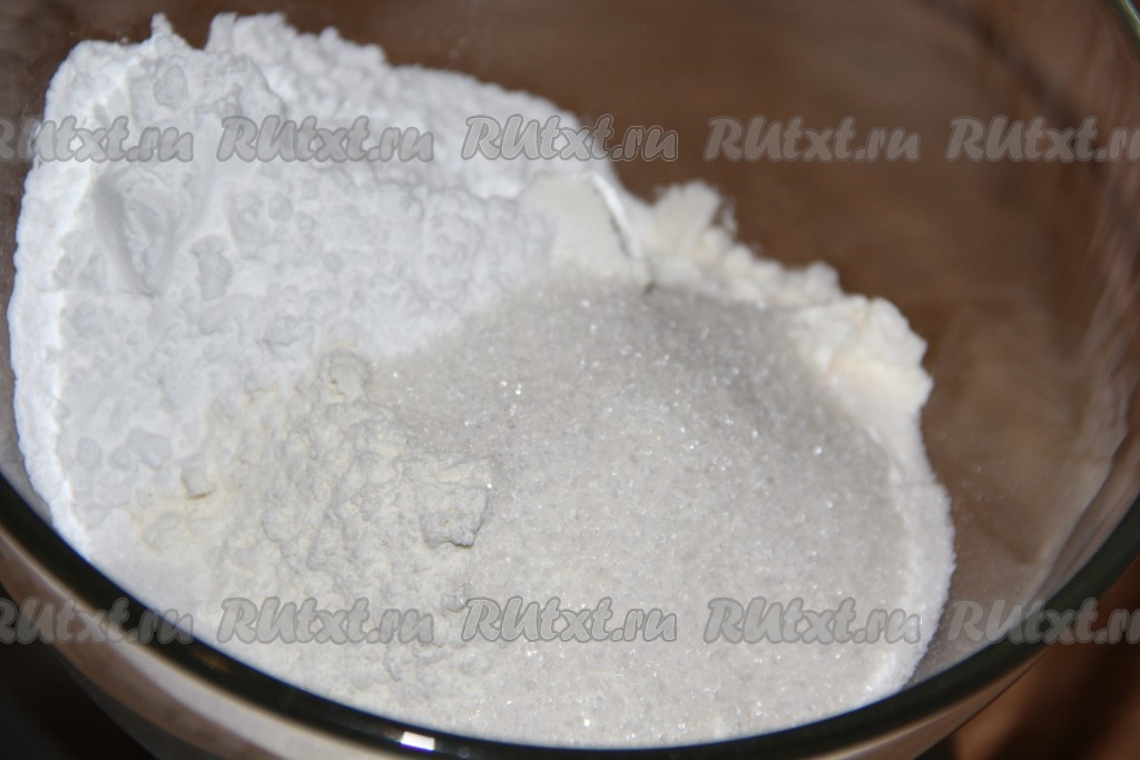 Для приготовления теста соединить муку, соль, сахар и крахмал.