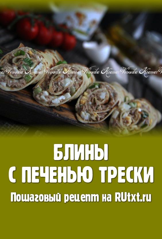 Нарезать блинчики на рулетики или разрезать на две части и подать к столу. Нежные и очень вкусные блины с начинкой из печени трески станут прекрасной закуской для повседневного и праздничного стола.