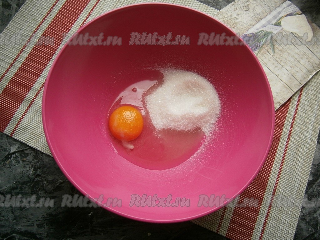 Для приготовления теста к сырому яйцу добавить 70 грамм сахара и щепотку соли.
