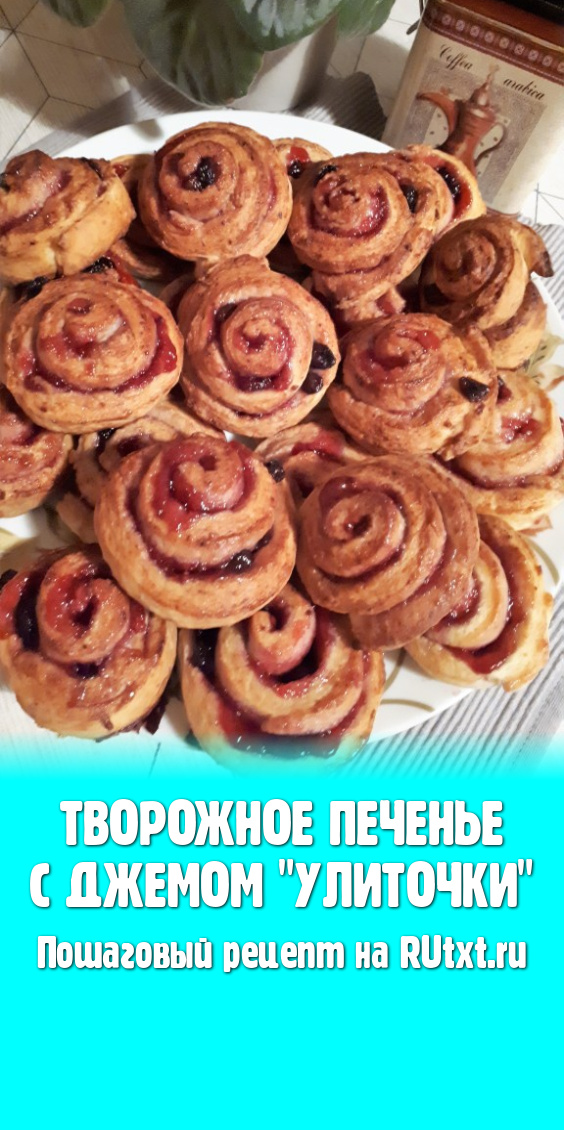 Нежное, вкусное и красивое творожное печенье с джемом "Улиточки" подаём с чаем или молоком.