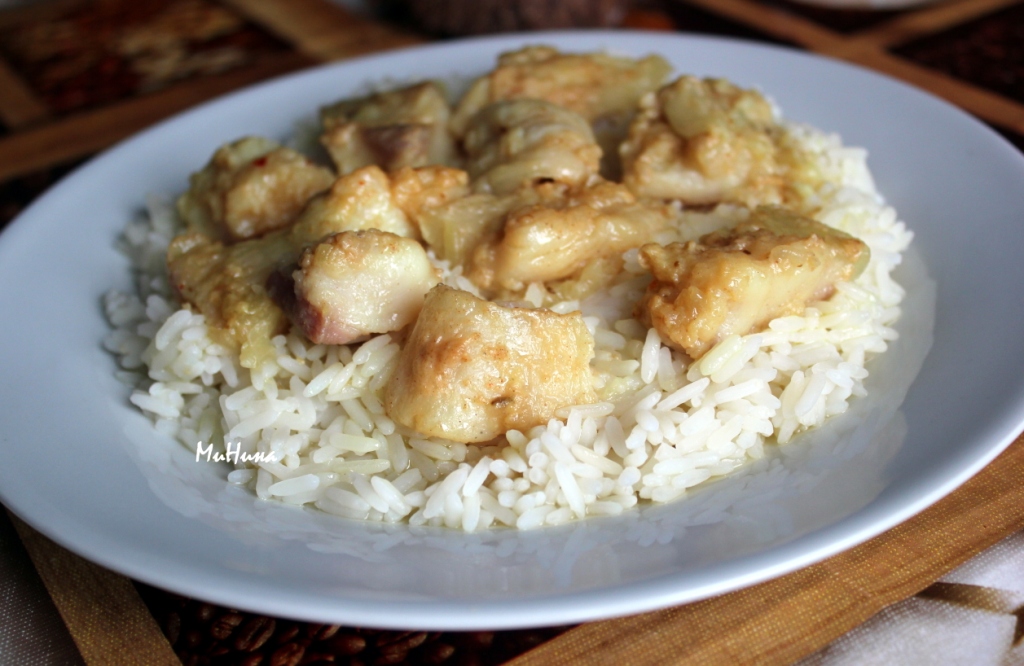 Подать рыбу можно с рисом, полив образовавшимся соусом из кокосового молока с добавлением карри.