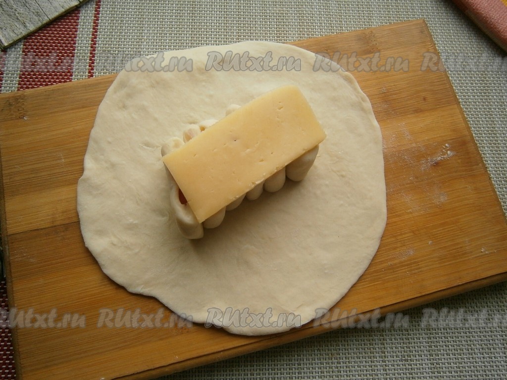 Сверху разместить прямоугольный кусочек сыра толщиной около 0,5 см.