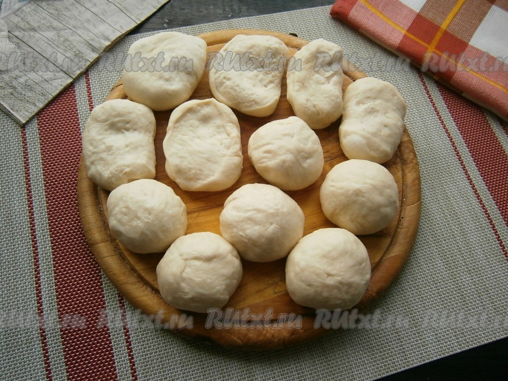 Тесто обмять, разделить на 12 одинаковых кусочков, 6 из которых скатать в шарики.