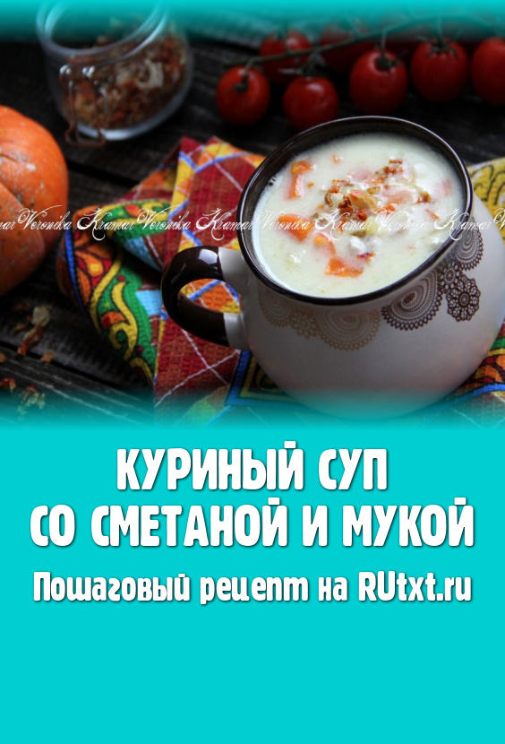 Куриный суп, приготовленный со сметаной и мукой, получается бархатистым, сытным и очень вкусным.