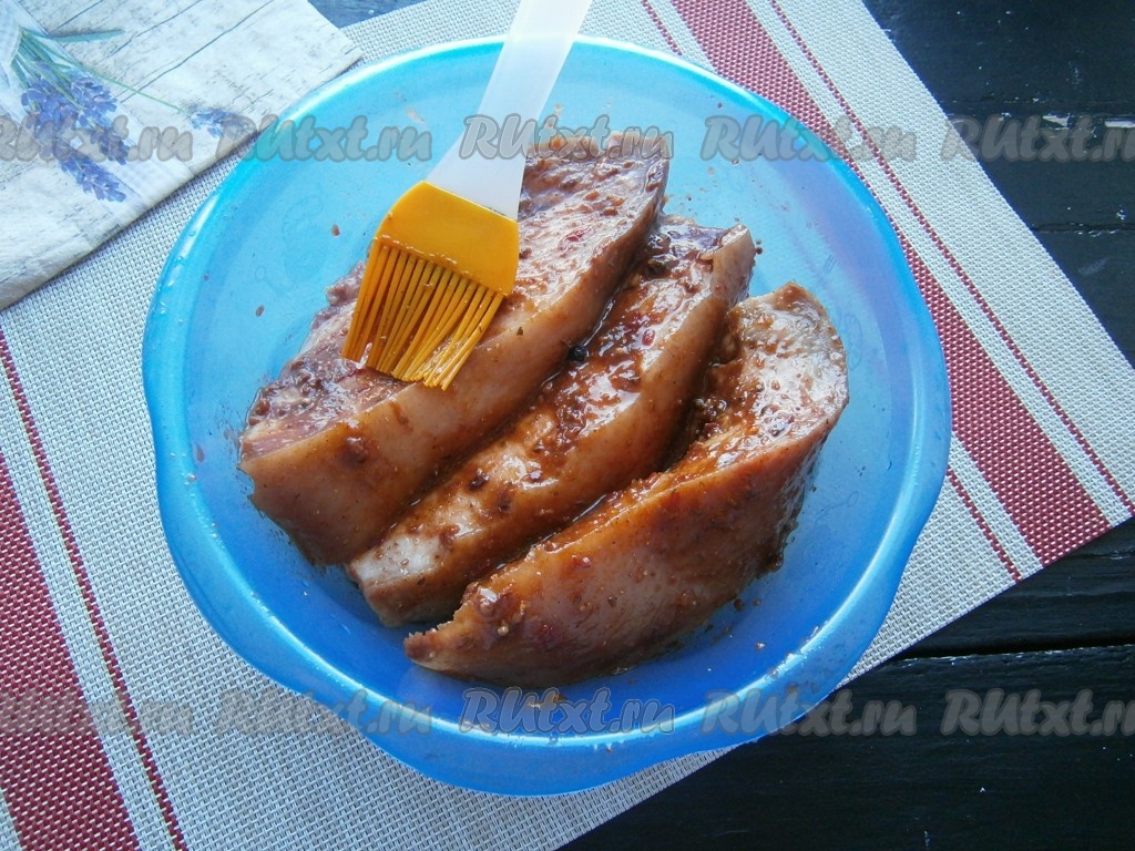 Приготовленным соусом-маринадом щедро смазать куски свиной щековины со всех сторон. Миску с щековиной накрыть и оставить в прохладном месте на сутки.