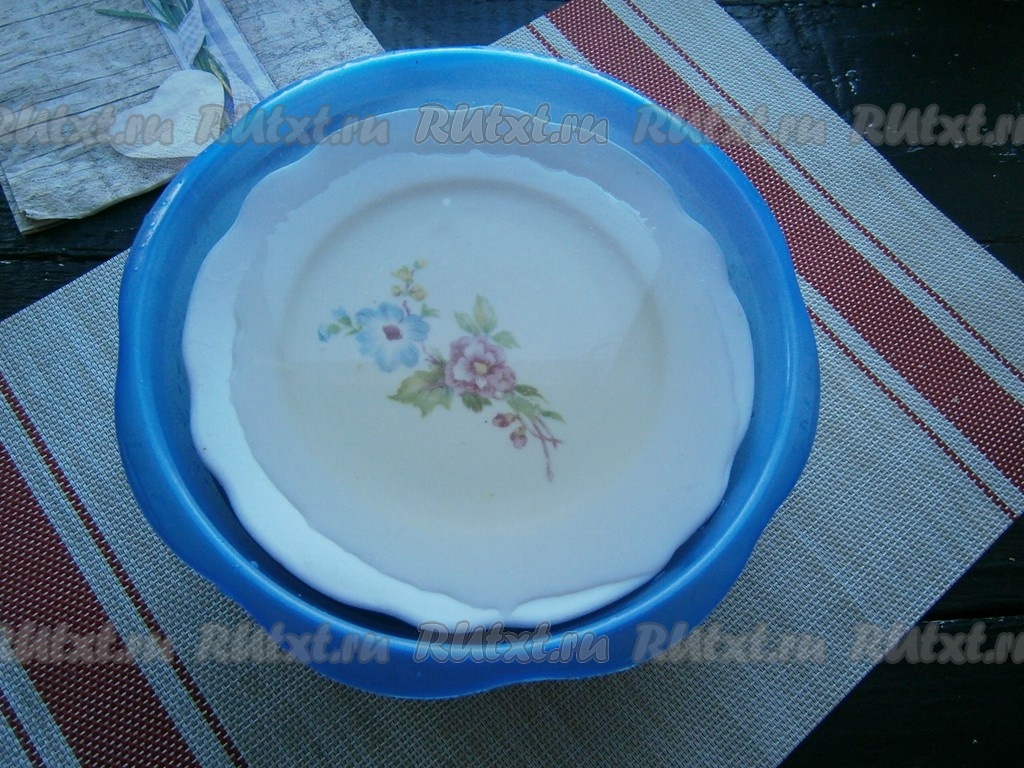 Прикрыть тарелкой (как на фото), чтобы щековина была полностью покрыта рассолом и оставить для просолки на 1 сутки в прохладном месте.