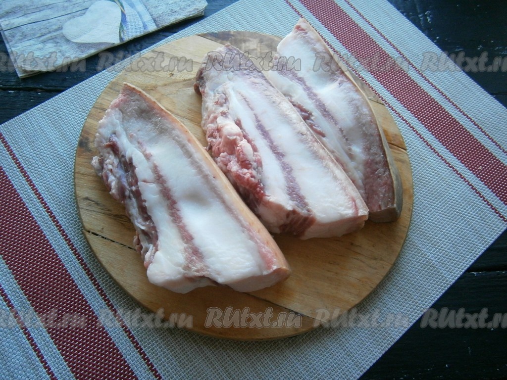 Приготовить рассол, смешав 1 литр воды и 3 столовые ложки крупной соли. В получившийся рассол поместить щековину.
