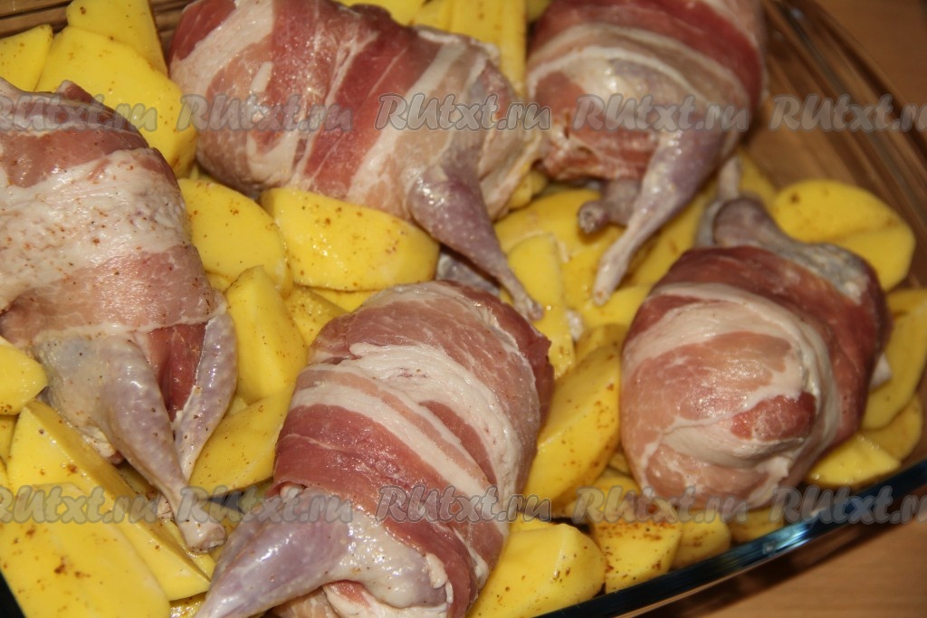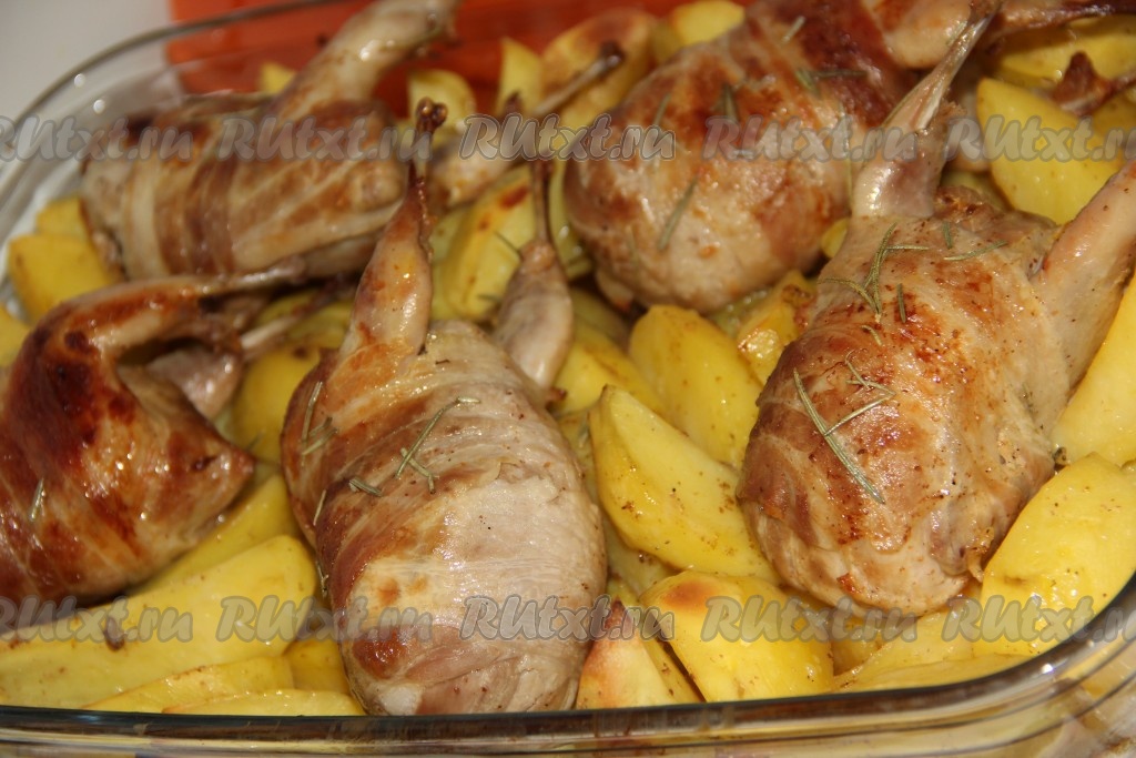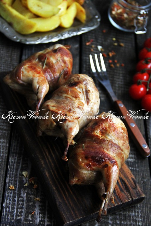 Вот такие вкусные, сочные и очень аппетитные перепела в беконе получились. Картошка пропиталась соком и ароматом птицы и была подана на гарнир.