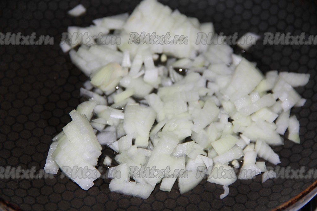 Перепелов, по желанию, можно нафаршировать, для приготовления начинки влить в сковороду масло, добавить мелко нарезанный очищенный лук и обжарить его пару минут на среднем огне, иногда перемешивая.