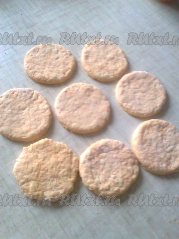 Вырезать из раскатанного теста кружочки (я вырезала чайной кружкой).